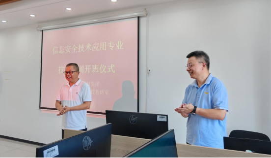 开班仪式上,奇安信湖南分公司副总经理钟伦玉表示:“作为长沙市数字安全战略合作伙伴,我们始终践行‘将安全技术转化为教育生产力’的使命。”他特别强调,此次合作是奇安信安全技术体系与职业院校教学场景的首次深度融合。软件学院院长胡伏湘从产教融合角度阐释了合作价值:“学校‘三教改革’需要奇安信这样的行业领军企业提供技术支撑,而企业则能通过院校实现人才培养前置化,这种双向赋能模式具有示范意义。”