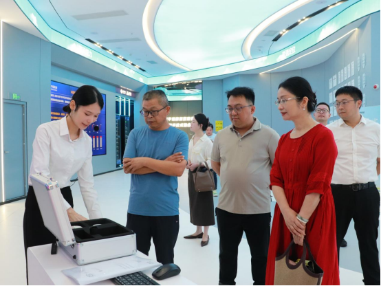 在中国联通中国联通中南研究院副院长、技术总负责人陈淮的陪同下,彭英姿一行参观了湖南数字产业先行区成果展览馆。展览馆涵盖了算网能力、智慧园区、教育服务规模、数据标注平台—数智厨房,以及全国典型案例等多个标志性展区,全方位呈现了中国联通中南研究院在5G、工业互联网、人工智能等前沿技术领域的应用实践。