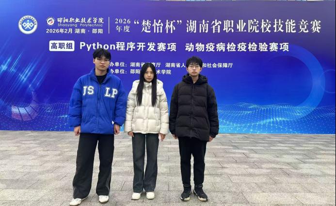 在备受关注的Python程序开发赛项中,由周倩老师指导的舒珍妮同学凭借扎实的专业功底和稳定的现场发挥,一举夺得一等奖;彭玲老师指导的田成浩同学荣获二等奖,徐磊同学荣获三等奖。