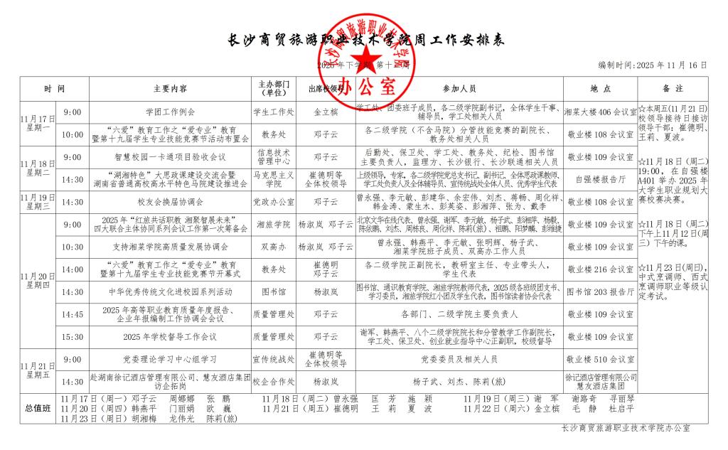2025年下学期第11周学校工作安排