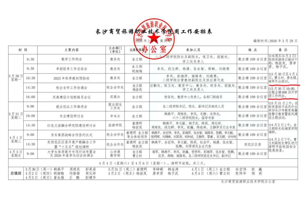 2026年上学期第4周学校工作安排
